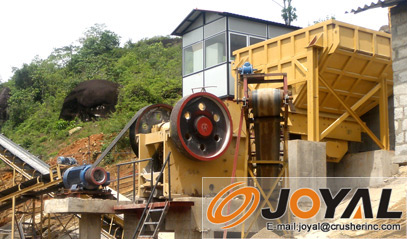 顎式破碎機的結構主要有機架、偏心軸、大皮帶輪、飛輪、動顎、側護板、肘板、肘板后座、調隙螺桿、復位彈簧、固定顎板與活動顎板等組成,其中肘板還起到保險作用。該系列鄂式破碎機破碎方式為曲動擠壓型,電動機驅動皮帶和皮帶輪,通過偏心軸使動顎上下運動,當動顎上升時肘板和動顎間夾角變大,從而推動動顎板向定顎板接近,與此同時物料被擠壓、搓、碾等多重破碎;當動顎下行時,肘板和動顎間夾角變小,動顎板在拉桿、彈簧的作用下離開定顎板,此時已破碎物料從破碎腔下口排出,隨著電動機連續(xù)轉動破碎機動顎作周期性的壓碎和排料,該破碎機實現(xiàn)批量生產(chǎn)。